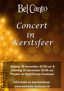 Op 19 en 20 december, 20:00 uur, presenteren het Seniorenkoor het Popkoor en het Jeugdkoor weer een zeer afwisselend repertoire in kerstsfeer, in Theater De Kunstgreep te Oostzaan.